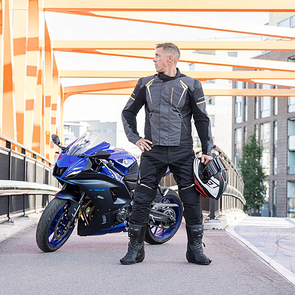 Urheilullinen ja hieman paremmin istuva vedenpitävä tekstiilitakki yhdistettynä kestävään joustavaan kankaaseen